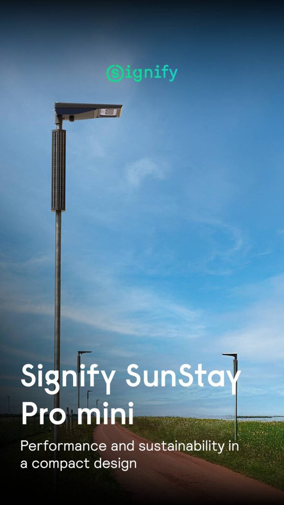 The Signify SunStay Pro gen2 and SunStay Pro gen2 mini will provide customers with an integrated, connected solar streetlight suitable for different applications, from bike paths to campuses and pedestrian areas.